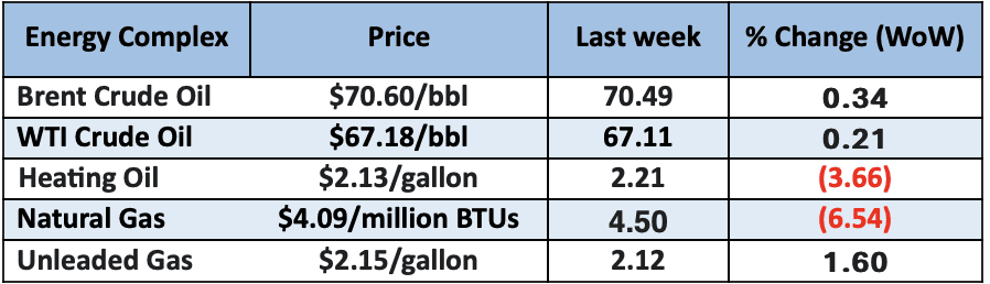 The Baker Hughes rig count gained 1 last week. There are 593 oil and gas rigs operating in the US – Down 36 from last year.