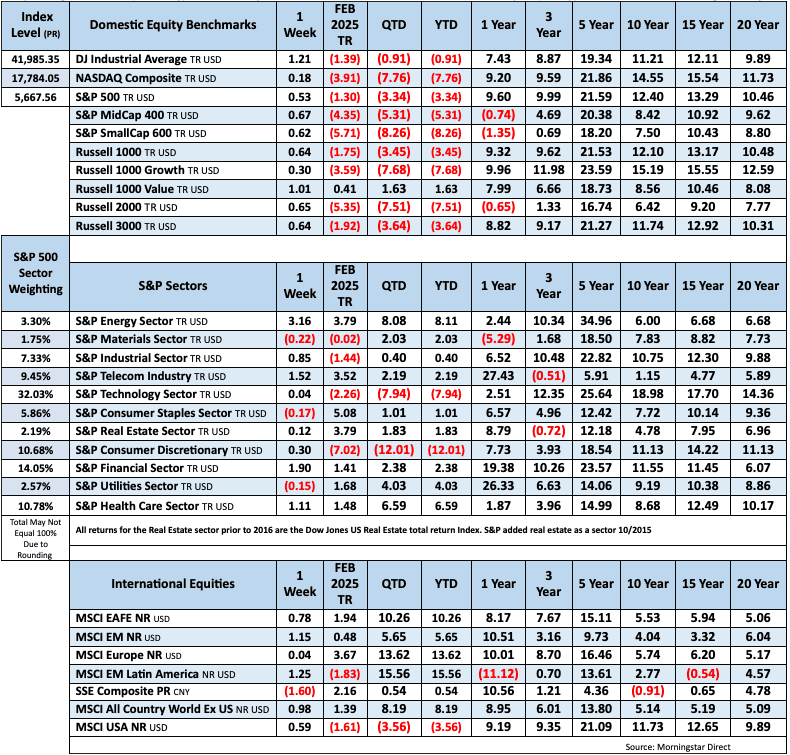 February Jobs Report –  BLS Summary  Released 3/7/2025  –  The US Economyadded 151k nonfarm jobs in February and the Unemployment rate edged up to 4.1%. Average hourly earnings increased 10 cents to $35.93.  Hiring highlights include +52k Healthcare, +21k Financial, and +18k Transportation and Warehousing.