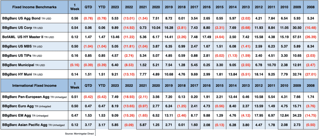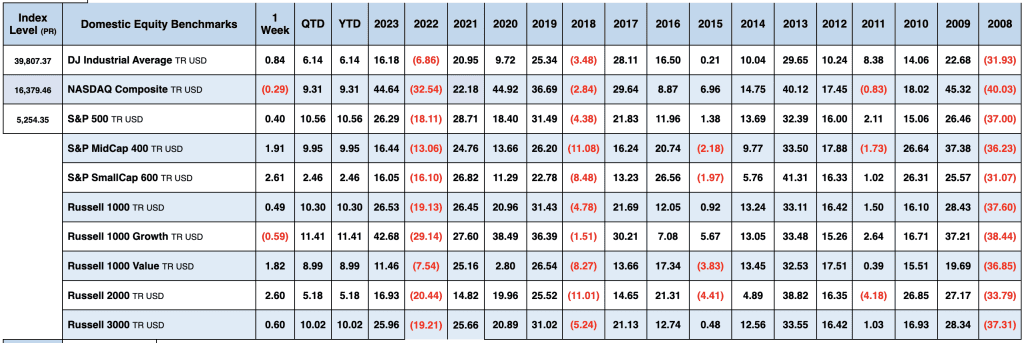 Treasuries were mostly firmer with yields pulling back across most maturities despite a pre-FOMC run higher. Most of the month’s Treasury note and bond auctions, some at record amounts, were well received. The dollar was mixed, with a bit of weakness on the euro and sterling crosses but some strength vs the yen. Gold was up 8.9%, its best month since July 2020, and set a new record close at $2,238.40/oz. WTI crude settled up 6.3% in its third consecutive monthly gain.