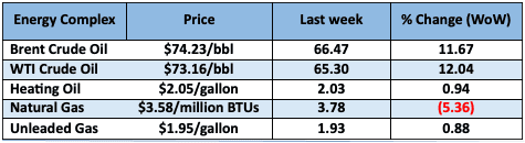 Energy Complex-  The Baker Hughes rig count  fell by 4 last week. There are 555 oil and gas rigs operating in the US – Down 35 from last year.