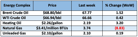 Energy Complex-  The Baker Hughes rig count  fell by 8 last week. There are 539 oil and gas rigs operating in the US – Down 46 from last year.