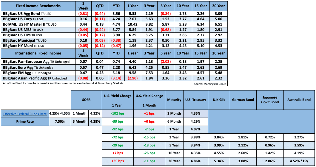 The week’s big economic release was June nonfarm payrolls, which beat consensus in contrast to a June drop in ADP private payrolls some analyst previews flagging possible downside risks to the headline. The unemployment rate unexpectedly ticked down to 4.1% from the prior 4.3%, while average hourly earnings growth was cooler than forecast. The ISM manufacturing and services reports were more mixed, with the headlines coming in just a hair light and respondent commentary still leaning cautious. Construction spending ticked lower m/m, largely as expected. June factory orders came in at an 11-year high, though driven largely by nondefense aircraft/transportation orders.