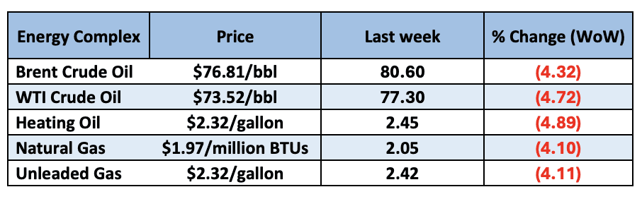 The Baker Hughes rig count was down 3 this week. There are 586 oil and gas rigs operating in the US –Down 73 from last year.