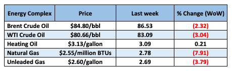 The Baker Hughes rig count was down 5 this week. There are 654 oil and gas rigs operating in the US – Down 109 from last year.