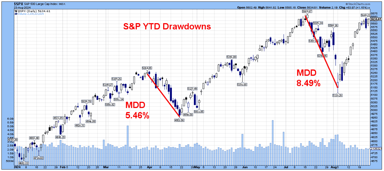 After falling over 8% earlier in the quarter, the market ended last week with the S&P back over 5600 and not far below July’s record highs. The rebound in confidence about a soft-landing outcome and the path back to 2% inflation has also been assisted by some positive takeaways from a number of recent earnings releases, with several major retailers reporting consumers continuing to spend. But while the path of least resistance has seemed to tilt to the upside, there remain concerns about the pace of labor-market softening, the underlying health of the consumer, and whether the Fed’s rate response will be productive in helping to avoid broader economic pain.