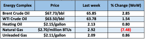 Energy Complex-  The Baker Hughes rig count  fell by 1 this week. There are 538 oil and gas rigs operating in the US – Down 47 from last year.  This week, oil prices edged up in part by falling inventories and a lingering geopolitical uncertainty -particularly the stalled Russia-Ukraine peace talks. Natural gas plummeted for the fifth straight week, Bearish weather forecasts and abundant storage weighed heavily on prices.