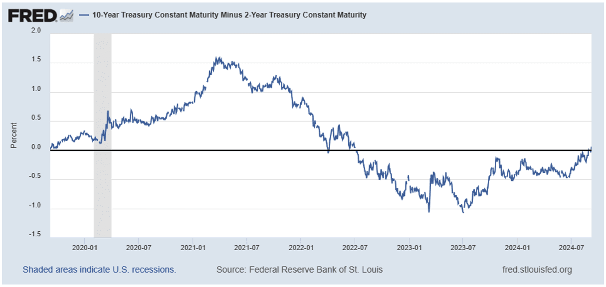 Last week’s shift in Fed and rate expectations also drove another sizable Treasury rally. The 2Y fell below 3.70% and 10Y yields under 3.75%, while the 2Y/10Y spread uninverted, ending the week around +6 bp after finishing in positive territory on Thursday for the first time since July 2022. While a number of economists have noted that the re-steepening of the yield itself is historically a recession indicator, Jefferies noted this week prior yield curve flips back into positive territory tend to be followed by solid SPX performance on the 6- and 12-month horizons.