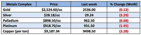 The S&P 500 posted its worst weekly performance since March 23’ and Nasdaq since Jan 22’. Small caps also sold off with the Russell 2000 trailing the S&P 500 and posting its second-worst week of the year. Big tech was mostly lower with NVDA -13.9% the biggest drag, while the group collectively fell below its 100 DMA. Treasuries saw another big rally across the curve with yields falling to the lowest levels since early-to-mid 2023. Gold was down 0.1%. Copper was down 3.3%. Bitcoin futures were down 8.6%, falling below $55K. WTI crude was down 8%, the biggest weekly selloff since March 23’.