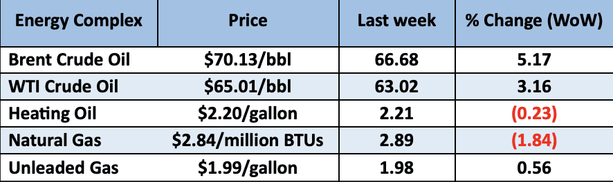 Energy Complex- The Baker Hughes rig count rose by 7 this week. There are 542 oil and gas rigs operating in the US – Down 38 from last year. Crude notched its biggest weekly gain in 3 months as a surprise U.S. crude draw and Russia’s move to curb fuel exports lifted prices. In U.S. balances, EIA’s weekly report showed refineries at 93% capacity with steady product output.