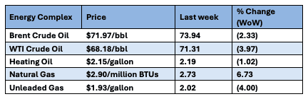 The Baker Hughes rig count was down by 1 last week. There are 587 oil and gas rigs operating in the US – Down 36 from last year.