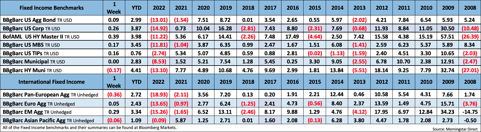 There was little truly surprising about this week’s economic releases, and certainly nothing to jar expectations for coming disinflation or upset the consensus for the Fed to continue toward an eventual pause with a 25bp hike next week. There was a large volume of Q4 earnings reporters this week and the season continued to undershoot expectations; but at the same time the bar seems to have been lowered, and there was little in the corporate commentary to suggest flipping expectations to a hard-landing scenario. Reduced FX pressures, the ongoing China reopening, easing supply strains, and the lack of an energy crisis in Europe all remained elements of the bull case.