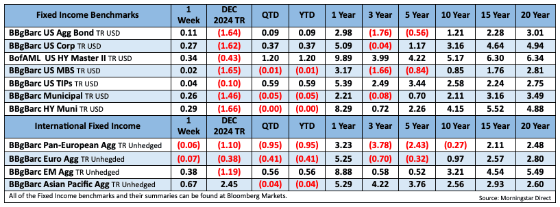 Consumer Confidence– Released 12/23/2024 – Consumer Confidence decreased from 111.7 to 104.7 in December. The Expectations Index which is based on consumers’ short-term outlook for income, business, and labor market conditions, tumbled 12.6 points to 81.1, just above the threshold of 80 that usually signals a recession ahead. While weaker consumer assessments of the present situation and expectations contributed to the decline, the expectations component saw the sharpest drop. Consumer views of current labor market conditions continued to improve, consistent with recent jobs and unemployment data, but their assessment of business conditions weakened. Compared to last month, consumers in December were substantially less optimistic about future business conditions and incomes. Moreover, pessimism about future employment prospects returned after cautious optimism prevailed in October and November.