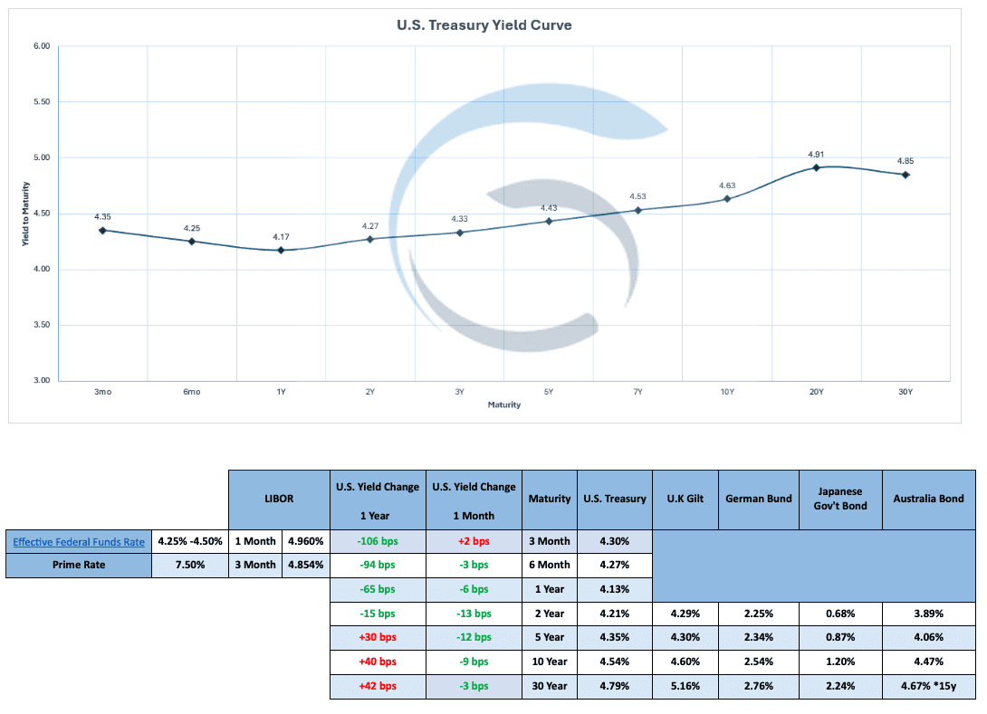 U.S. Trade Balance– Released 1/7/2025 – The U.S. Census Bureau and the U.S. Bureau of Economic Analysis announced that the goods and services deficit was $78.2 billion in November, up $4.6 billion from $73.6 billion in October. November exports were $273.4 billion, $7.1 billion more than October exports. November imports were $351.6 billion, $11.6 billion more than October imports. The November increase in the goods and services deficit reflected a increase in the goods deficit of $5.4 billion to $103.4 billion and an increase in the services surplus of $0.9 billion to $25.2 billion.