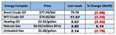The Baker Hughes rig count fell by 4 last week. There are 576 oil and gas rigs operating in the US – Down 45 from last year.