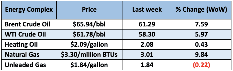 Energy Complex-  The Baker Hughes rig count  added 2 this week. There are now 550 oil and gas rigs operating in the US – Down 35 from last year.