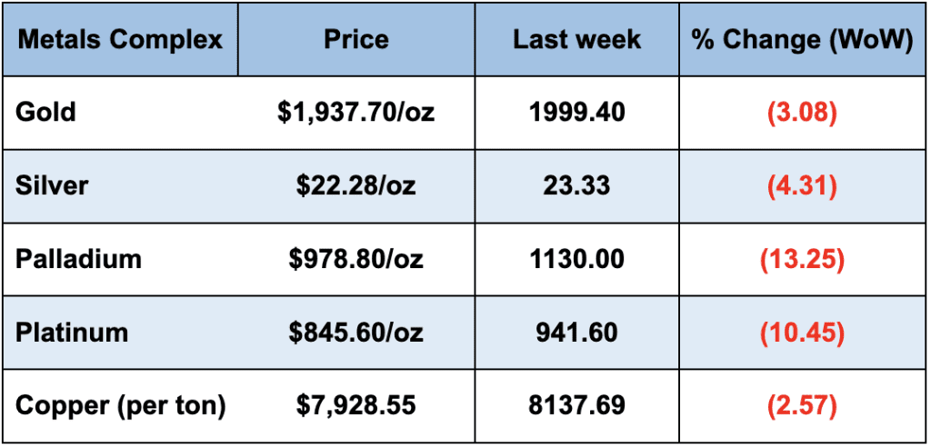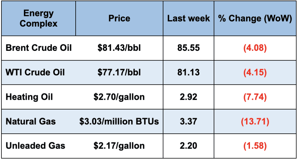 Treasuries were weaker with the curve flattening; the 2Y moved back above 5%. The move came amid a focus on somewhat hawkish Powell comments and notably weak demand at this week’s 30Y auction. The dollar was higher overall, particularly on the yen and sterling crosses; DXY +0.8%. Gold (3.1%) was down after peeking above $2,000/oz in last week’s trading. Crude logged its third-straight weekly decline, with WTI settling down 4.1%