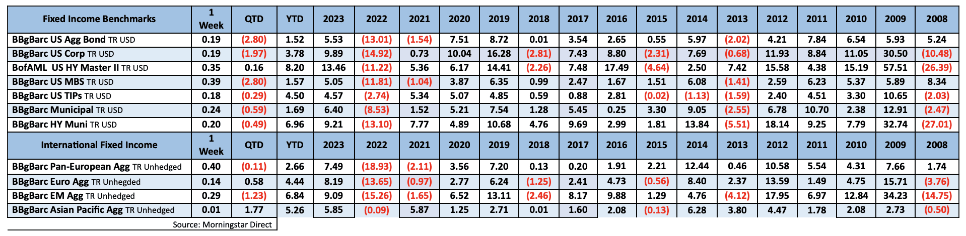Economic data came in largely to the positive. Initial jobless claims declined for the third straight week, though continuing claims continued to rise and hit their highest level in three years. Philadelphia Fed manufacturing unexpectedly flipped back into contraction with new orders decreasing. November US composite PMI printed at its highest level since April 2022, driven by continued strength in services (though there were some signs of optimism for manufacturing as well). November’s final UMich consumer sentiment report decreased a bit from the flash reading, but was still improved m/m; year-ahead inflation expectations declined slightly. On the housing front, October housing starts missed (with some blame on weather impacts) while NAHB homebuilder sentiment came in at the highest level in seven months. Existing home sales were better, with the report noting some benefit from improving inventories.