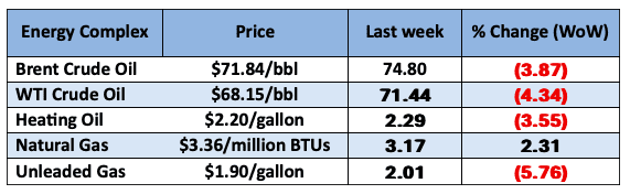 The Baker Hughes rig count fell by 1 last week. There are 582 oil and gas rigs operating in the US – Down 43 from last year.