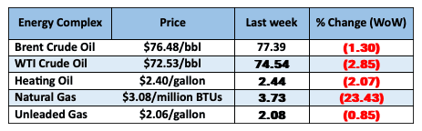 The Baker Hughes rig count  gained 6 last week. There are 582 oil and gas rigs operating in the US – Down 37 from last year.