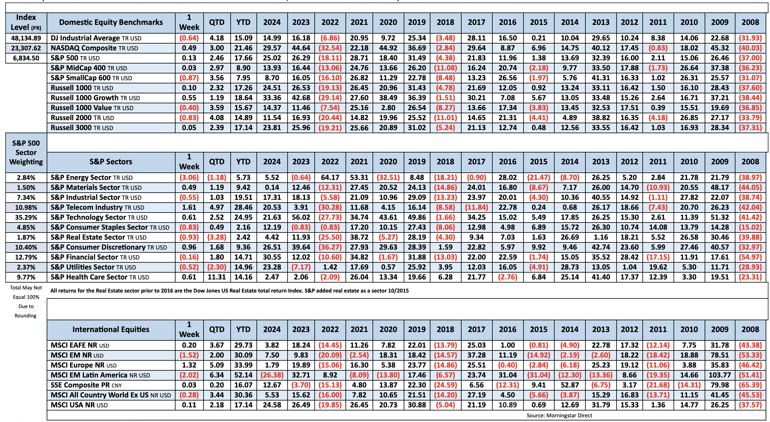 Major US equity indices were mixed this week. After dropping last Friday, the S&P continued to slide Monday-Wednesday before gaining its footing to finish higher on Thursday and Friday.