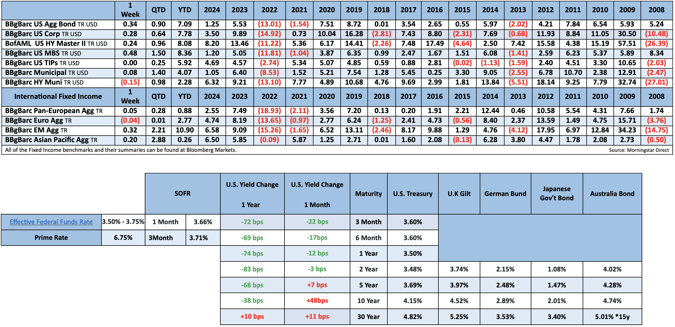Fixed Income – Treasury yields were rangebound but sensitive to data: Softer inflation initially lifted bonds, but uncertainty around data quality and labor market strength tempered aggressive moves. Yields broadly held within familiar ranges falling modestly.