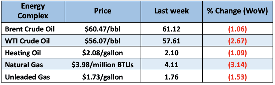 Energy Complex- The Baker Hughes rig count showed a loss of 6 this week. There are now 542 oil and gas rigs operating in the US – Down 47 from last year. Gasoline continued lower hitting prices last seen back in February 21’.