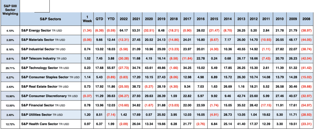 Energy, staples and utilities were the only negative sectors in 2023.