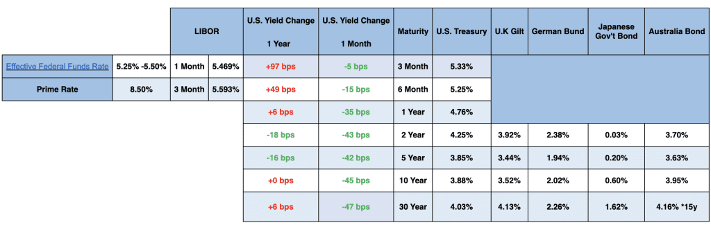 Fed rate policy was at the heart of the 2023 narrative. December 2022 had seen a 50bp FOMC hike after four straight 75bp moves higher, with Chair Powell maintaining the hawkish tone that the Fed had more work to do in taming inflation. Through this July, the FOMC voted for four additional 25bp hikes (up to a 5.25-5.50% Fed funds target rate), with the Fed continuing to largely voice its “higher for longer” mantra and the market debating where the ceiling would be.